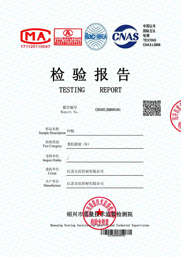 江蘇吉慶管材集團(tuán)有限公司創(chuàng)辦于2010年2月,是pp管,pp管材,pp管件,pp風(fēng)管,frpp管,frpp管材,pph管,pph管材,pph管件,pph風(fēng)管,pvdf管,pvdf管材,pp儲(chǔ)罐,pp板材的專業(yè)化生產(chǎn)企業(yè)。公司占地30余畝,擁有各類資產(chǎn)8000余萬元,專業(yè)技術(shù)人員20余人,管材生產(chǎn)線10條,管件生產(chǎn)線11條,具備了10000余噸各類防腐塑料制品的年生產(chǎn)能力。公司通過了ISO9001-2000質(zhì)量體系認(rèn)證,同時(shí)被評(píng)為AAA信用單位,2018年公司被評(píng)為高新技術(shù)企業(yè),此后陸續(xù)取得安全生產(chǎn)管理證書等榮譽(yù)。公司位于水上花園城市----江蘇省揚(yáng)中市八橋鎮(zhèn)永福路18號(hào),交通便捷,可直接導(dǎo)航至公司園區(qū)內(nèi)。公司全體員工將以高度的敬業(yè)精神,嚴(yán)格的質(zhì)量控制理念和科學(xué)的管理方法,及時(shí)周到的服務(wù),竭力為我國塑料管道在各領(lǐng)域的推廣和應(yīng)用作出更大的貢獻(xiàn)!